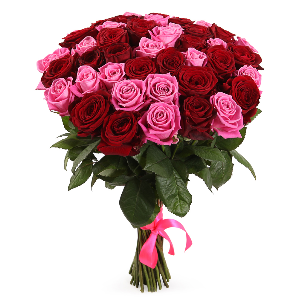 Букет из 51 красной и розовой розы